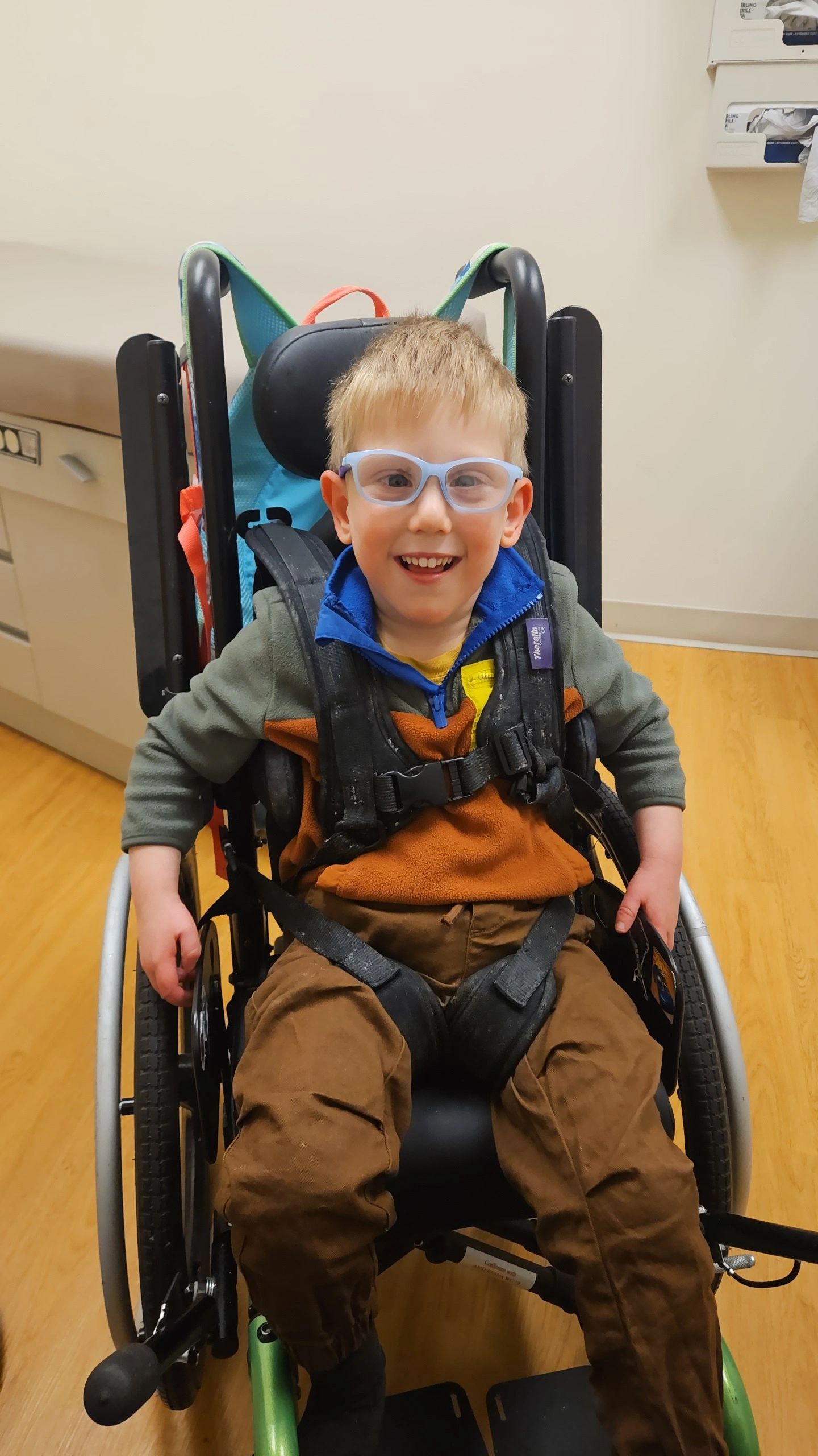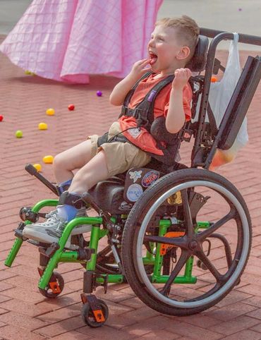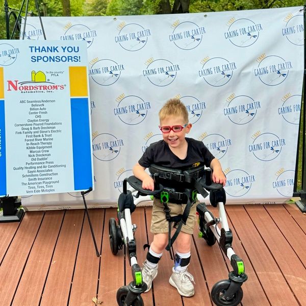Carter was missing milestones early on at just 3 months. Shortly after his pediatrician referred him for genetic testing, and at 10 months he was diagnosed with CTNNB1 Syndrome. Since then Carter sees multiple specialist and attends weekly speech, occupational, and physical therapies. Now at 4 years old, Carter still has problems sitting on his own, standing, and walking. Carter's limited mobility requires use of a wheelchair, gait trainer, and an AAC Device for communication. He also has AfO's and glasses to help him with his every day task.